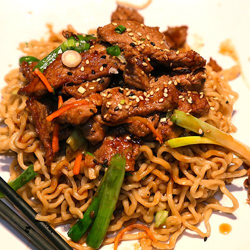 Ramen noodle tossed with carrot, scallions,